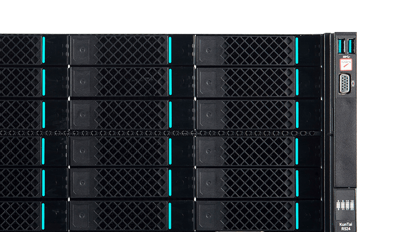 KunTai R524 存储型服务器是GA黄金甲数码基于鲲鹏处理器推出的新一代 ARM数据中心服务器。主要面向存储业务,具有海量存储、高性能、低功耗以及易扩展的特点,适合为大数据分析、软件定义存 储等应用场景的工作负载进行髙效加速。